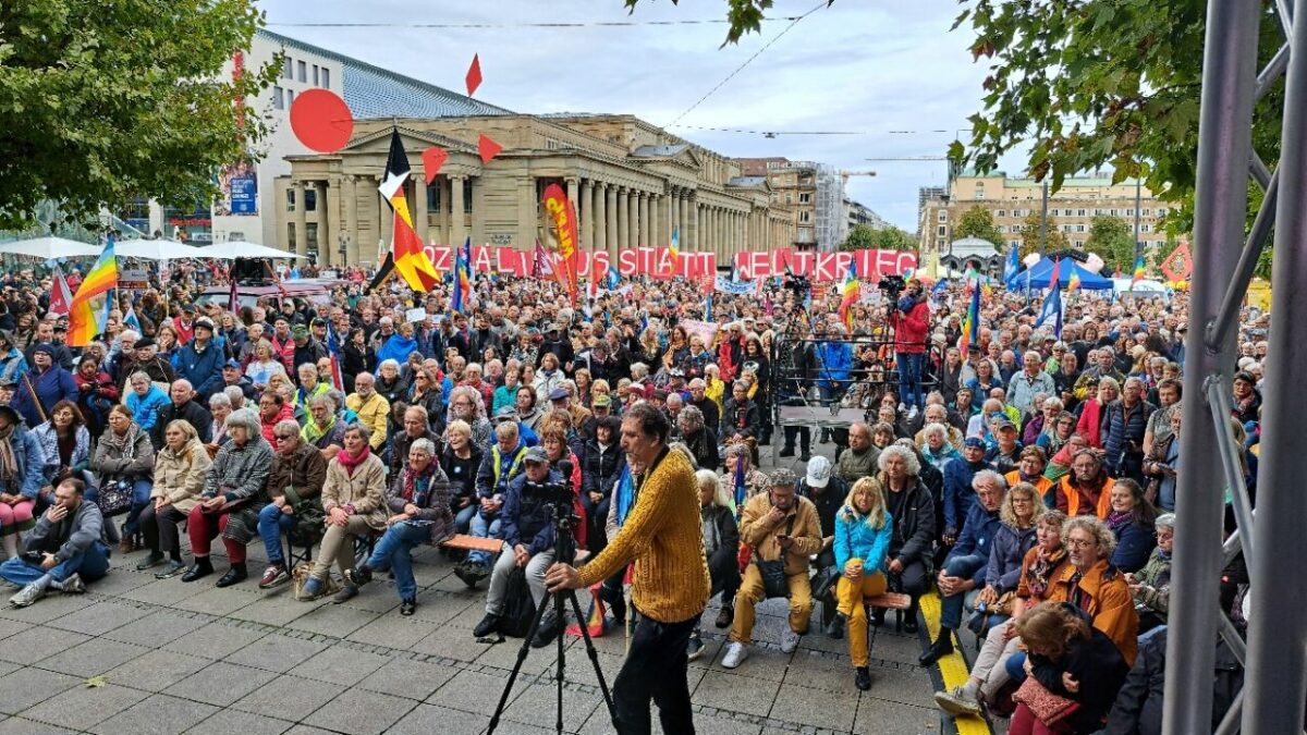 Gegen die zunehmende Kriegsgefahr und Militarisierung der Gesellschaft, vereint gegen Völkermord, Sozialabbau und für das Ende von Kriegen und Hass, setzten in Stuttgart 15.000 und in Berlin 20.000 Menschen ein deutliches Zeichen. Das Friedensbündnis Esslingen war dabei und hatte sich an der Vorbereitung aktiv beteiligt. Der Vorbereitungskreis „Nie wieder kriegstüchtig! Stehen wir auf für Frieden!“ vereinte erfolgreich eine gewachsene soziale und politische Opposition gegen die Hochrüstungspläne und die Verschuldungspolitik der Bundesregierung. Eine Widerstandsbewegung, die sich gegen sozialen Kahlschlag wehrt, der mit der hochgefährlichen Aufrüstung der Bundesregierung einhergeht, weil das Geld für Schulen, den Öffentlichen Nahverkehr, das Gesundheitswesen, die Kultur sowie Klimaschutz und globale Entwicklung gebraucht wird. Die Redner und Rednerinnen stellten sich entschieden gegen die Aufrüstungspläne der Bundesregierung, verurteilten die Mitverantwortung Deutschlands am israelischen Völkermord in Gaza, sprachen sich gegen eine Wehrpflicht aus, lehnten die erwartete Stationierung von US-Mittelstreckenwaffen in Deutschland ab und forderten Diplomatie statt Waffenlieferungen. Sie äußerten die Befürchtung, dass der Druck des Schuldenmachens dieses Land zwangsläufig noch unsozialer machen wird. Die knapp 500 unterstützenden Organisationen, Initiativen, Gruppen haben mit ihrer Mobilisierung diesen Erfolg möglich gemacht. Das Friedensbündnis Esslingen geht mit gestärktem Vertrauen weiter in einen heißen Herbst, um einen nuklearen Winter zu verhindern. Sie wollen nicht kriegstüchtig, sondern friedensfähig bleiben. Das ist das Fazit.