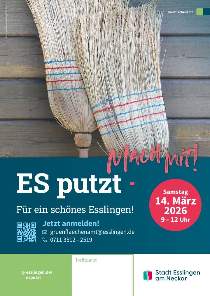 Foto: Stadt ES Der Bürgerausschuss Zollberg beteiligt sich auch in diesem Jahr wieder an der Aktion „Esslingen putzt“. Seien Sie mit dabei, wenn wir gemeinsam einen Frühjahrsputz in unserem Stadtteil machen. Wir treffen uns: 14. März 2026 um 09:00 Uhr auf dem Zollernplatz Alle notwendigen Arbeitsmaterialien werden bereitgestellt. Zum Ende der Putzaktion laden wir… Weiterlesen