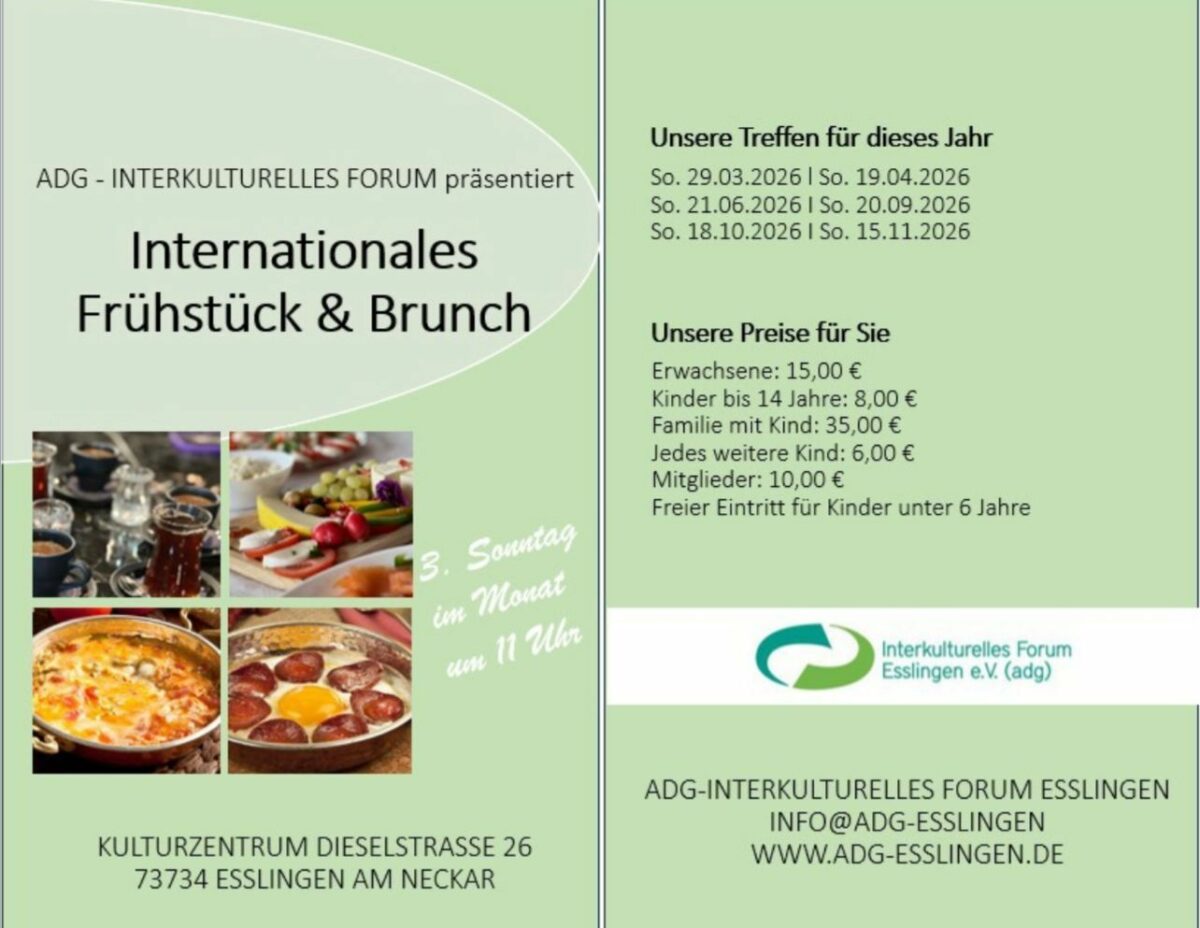 Foto: Yeliz Murat Griechische Klänge zum Frühstück: Ein kulturelles Highlight in der Dieselstraße Nach der langen Winterpause meldet sich das beliebte Frühstück des Interkulturellen Forums Esslingen (adg) endlich zurück. Am Sonntag, den 29. März, erwartet die Gäste ab 11 Uhr im Kulturzentrum Dieselstraße ein reichhaltiges Buffet, das in entspannter Atmosphäre zum gemeinsamen Genießen einlädt. Es… Weiterlesen