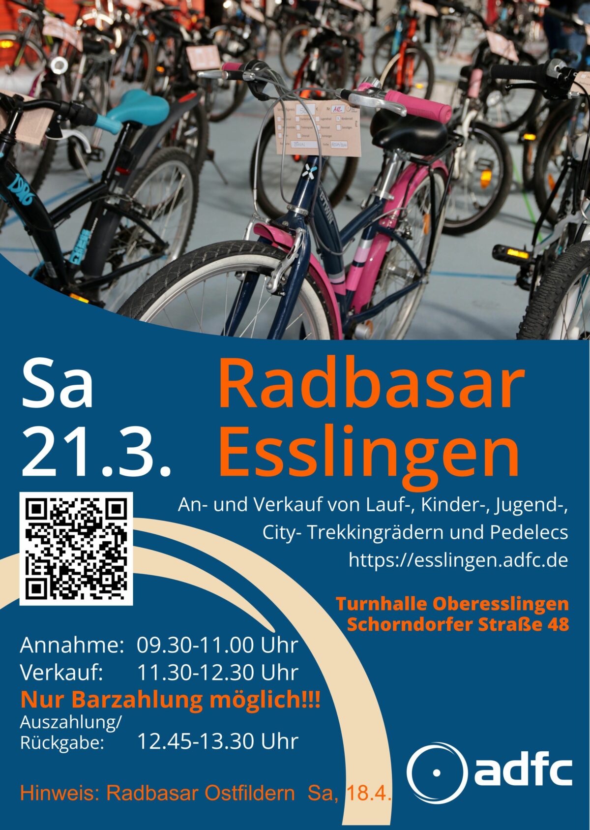 Foto: ADFC Esslingen Am Samstag, 21.3. veranstaltet der ADFC seinen alljährlichen Radbasar, Räder aller Art werden von privat zu privat verkauft. Das Event findet in der Turn- und Versammlungshalle Oberesslingen, Schorndorfer Str 48 statt.Wer ein Rad verkaufen will oder ein gut erhaltendes Gebrauchtes sucht: hier ist die Gelegenheit! Angenommen werden Laufräder, Kinder- und Jugendfahrräder, Citybikes, Touren-, Rennräder,… Weiterlesen