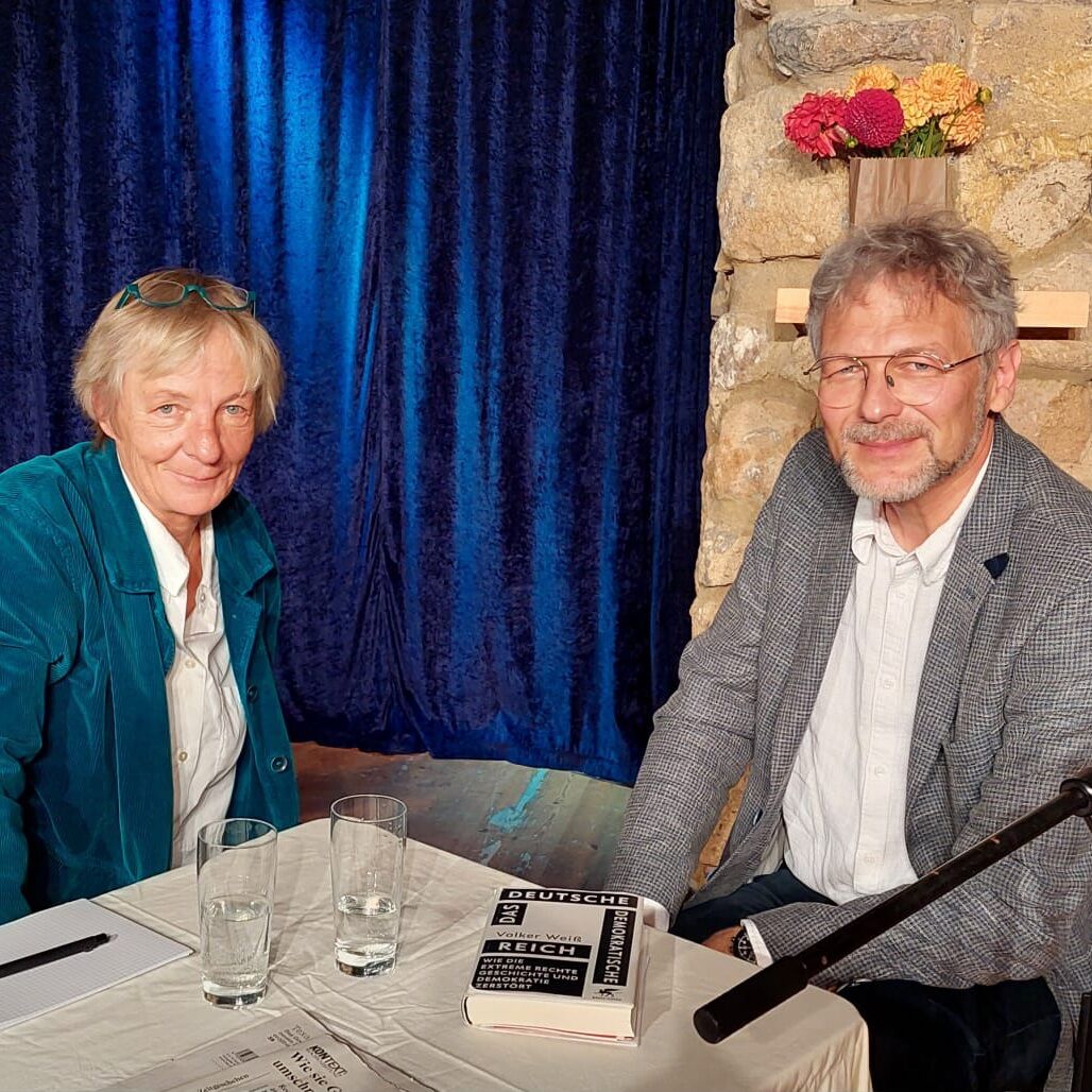 Foto: Claus-Peter Albers Am Sonntag, 28.9.2025, hatten wir, die Initiative !Aufstehen! Esslinger Initiative für Demokratie, um 11 Uhr eine Matinée mit dem Historiker Volker Weiß im Kabarett der Galgenstricke in Esslingen veranstaltet. Er las aus seinem Buch “Das Deutsche Demokratische Reich” und hat sich mit der Moderatorin Gesa von Leesen, Journalistin bei Kontext in Stuttgart,… Weiterlesen