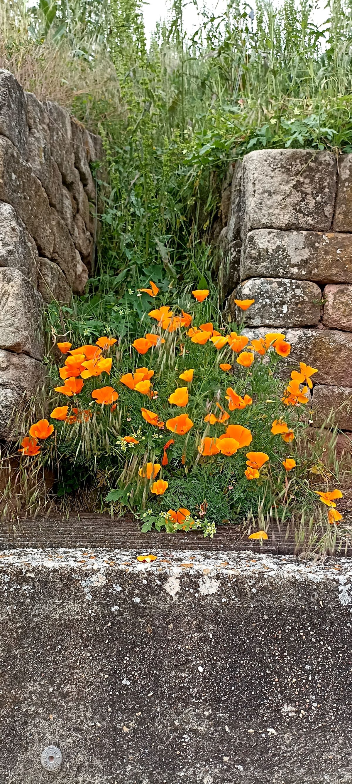 Foto: Elke Paul NEIN, diese zarte Blütenpracht wird von den alten Mauern streng bewacht.Erfreuen die Menschen beim spazierengehen, werden hoffentlich nicht gepflückt im vorübergehen.