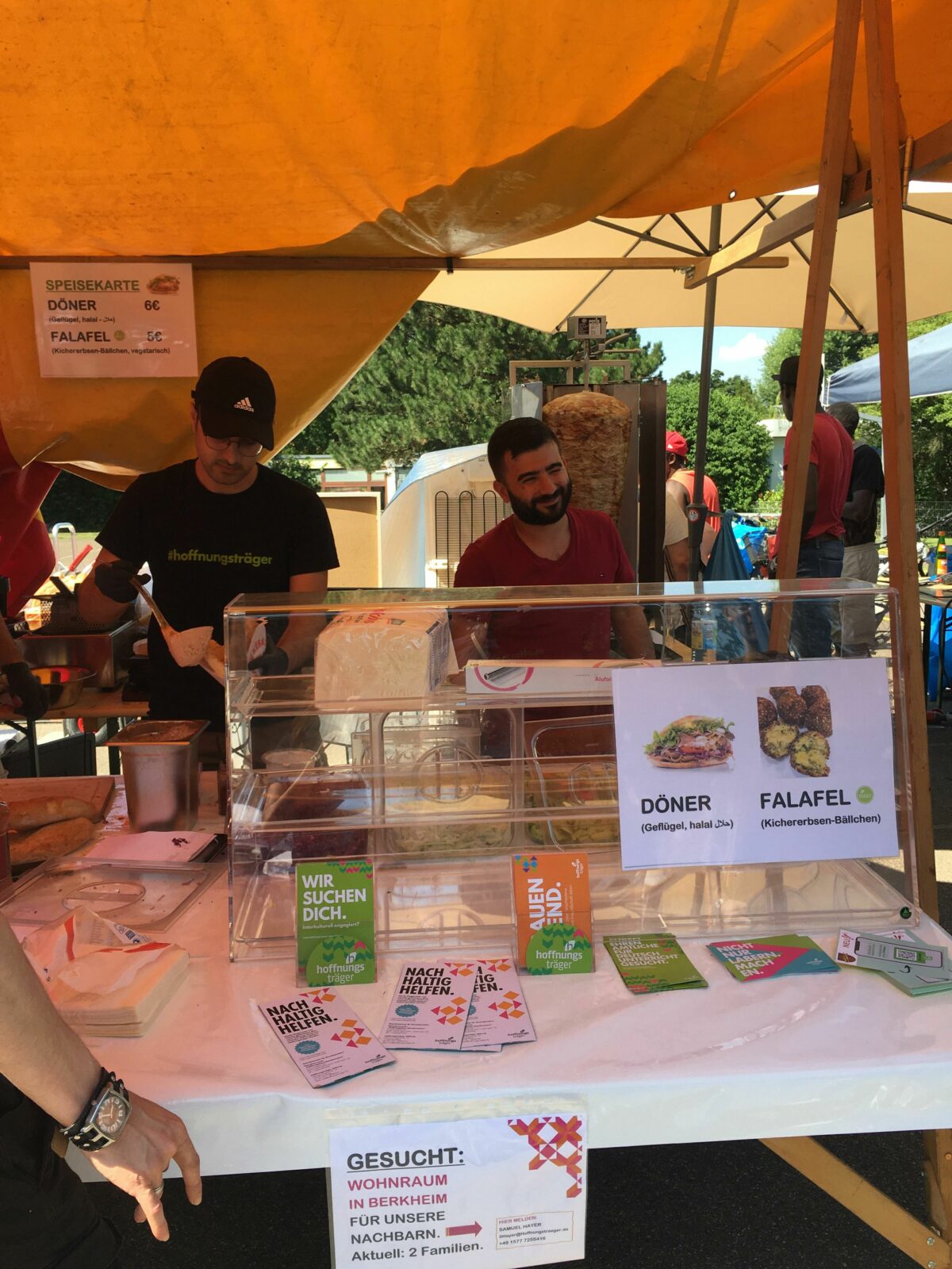 Foto: Hoffnungsträger Stiftung Hoffnungshaus Esslingen begeistert beim Meisenfest Berkheim   Mit über 350 verkauften Hähnchen-Dönern und syrischen Falafel-Yufka war der Stand des Hoffnungshauses Esslingen ein echter Publikumsmagnet beim Meisenfest Berkheim am 26. Juli. Mehr als 35 Ehrenamtliche mit und ohne Fluchterfahrung haben gemeinsam mit Bewohnerinnen und Bewohnern gekocht, serviert und die Besucherinnen und Besucher über… Weiterlesen