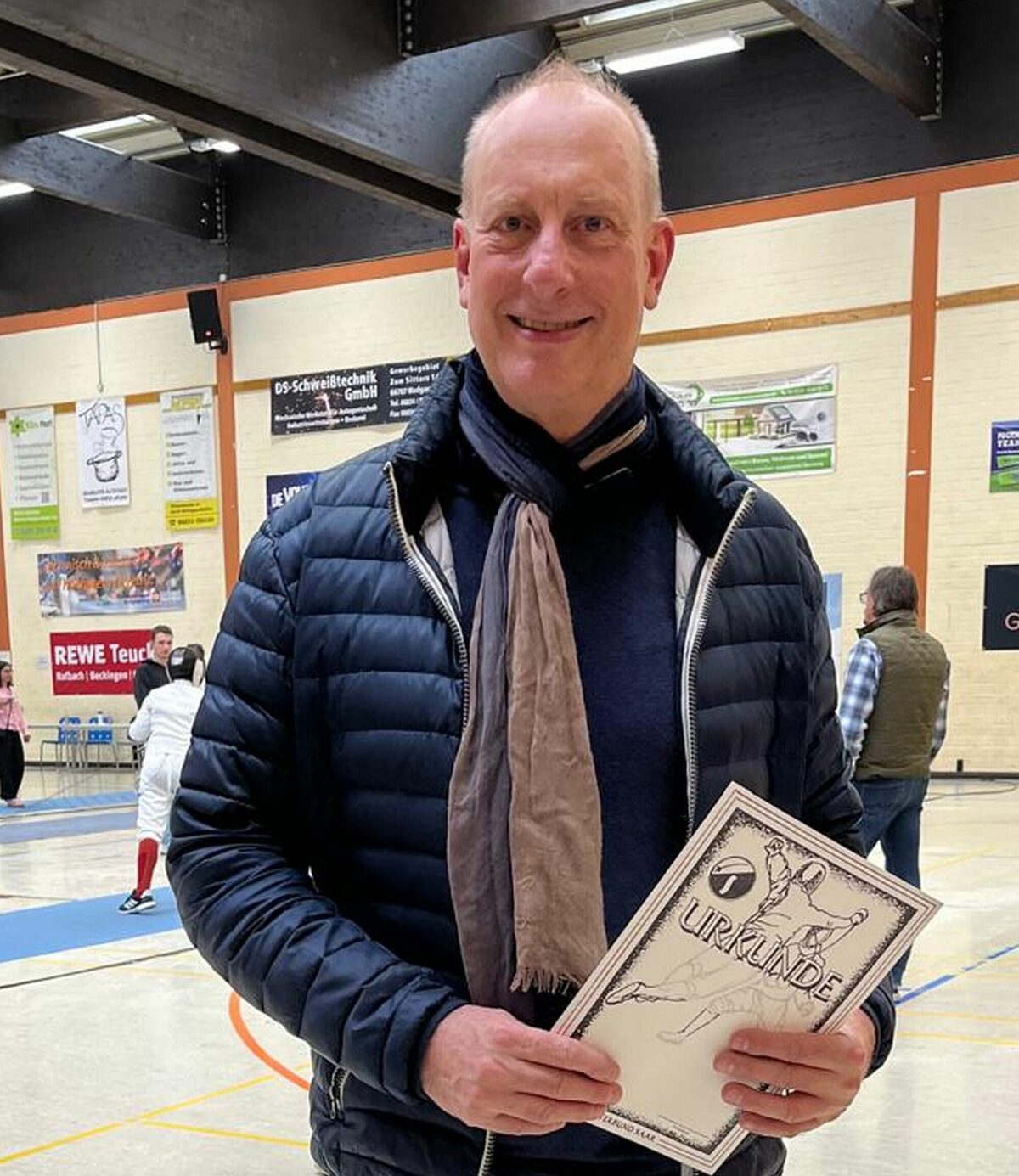 Foto: SV 1845 Esslingen Der für die SV 1845 Esslingen startende Norweger Jan Falck-Ytter hat sich am 26. September bei den international offenen Nordrhein-Westfälischen Veteranen-Meisterschaften in Essen in der Altersklasse M60 mit dem Degen stark präsentiert. Das hochklassig besetzte Turnier zählt für die deutsche Rangliste. Nach einer durchwachsenen Vorrunde zog Falck-Ytter als Elfter in die… Weiterlesen