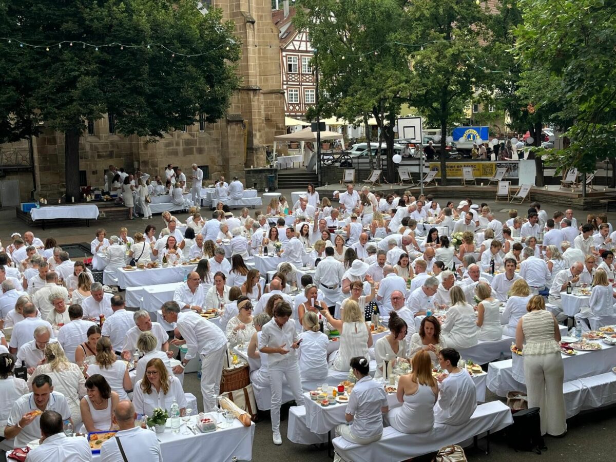 2025 reihte sich eine neue Perle auf die Kette von Veranstaltungen in Esslingen, deren Konzept global gefeiert wird. Die Rede ist vom Dîner en blanc, welches im Juli Première feierte und mit über 300 Besuchern auf dem Esslinger Schwörhof ein Highlight war! Dieses ausverkaufte Picknick in Weiß wurde von engagierten Mitgliedern der Esslinger Lions Clubs Burg, Neckar und Postmichel organisiert. Der Dresscode war Programm: Alle Gäste erschienen ganz in weiß gekleidet, brachten bestückte Picknick-Körbe mit und dekorierten die vor Ort bereits weiß eingedeckten Tische sehr kreativ. Die Gastgeber sorgten für ein angenehmes Ambiente inmitten der historischen Umgebung und genossen mit ihren Gästen die ausgelassene Stimmung mit Jazzklängen und Tischzauberei. Ein wunderbarer Abend mit vielen Begegnungen unter langjährigen Freunden und zufälligen Tischnachbarn, mit Geburtstagskindern, Kolleginnen, Nachbarn und Freundinnen, Lions-Mitgliedern und Angehörigen, mit bekannten Gesichtern aus Esslingen, Neigschmeckten und Sponsoren. Ein Abend, bei dem Freude und soziales Engagement ganz oben auf der Agenda standen, ja sogar unzertrennlich waren. Und jetzt? Jetzt heißt es „Wir tun’s nochmal, weil’s so schön war!“. Am Samstag, dem 18. Juli 2026 wird sich der Pausenhof der Waisenhofschule wieder in einen Ort des gemütlichen und stilvollen Beisammenseins verwandeln. Auch dieses Mal wird der Reinerlös durch die Eintritte in soziale Projekte fließen. Welche Projekte das sein werden und wie man an Tickets kommt, erfahren Sie in den nächsten Wochen und Monaten hier in der Zwiebel, in den Esslinger Veranstaltungskalendern oder auf https://esslingen-burg.lions.de.