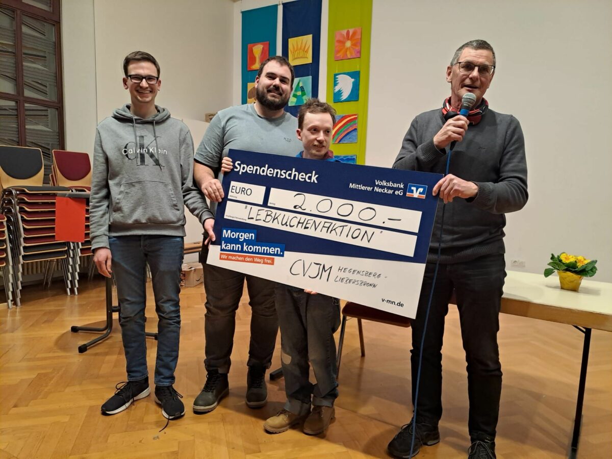 Am Mitarbeiterabend der Ev. Kirchengemeinde Hegensberg-Liebersbronn wurde ein symbolischer Spendencheck an die Mitglieder des CVJM Hegensberg-Liebersbronn überreicht.