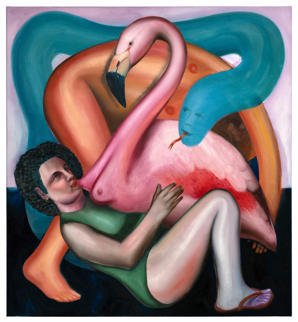 Vor allem die Schlange interessiert die Künstlerin unter den Tieren und taucht in verschiedenen Formen immer wieder in der Ausstellung auf: als Malerei, Installation oder Kostüm. Die Schlange hat in Chile und in vielen weiteren Kulturen wichtige Bedeutungen – mal wird sie als Gottheit verehrt, mal gilt sie als Heilerin oder als Beschützerin der Unterwelt – bei Ivana de Vivanco wird sie zur Mittlerin zwischen Mensch und Natur.