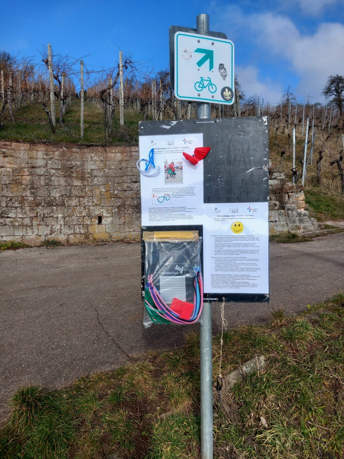 Vom 07. Februar bis 18. Februar gibt’s einen humoristischen Stationenweg von St. Katharina vorbei an der Evangelischen Kirche Sulzgries in Richtung Streuobstwiesen auf der Neckarhalde und hinab durch die Weinberge zur Esslinger Frauenkirche und Abschluss am Münster St. Paul. Der Weg kann von beiden Richtungen begangen werden. Beginn oder Ende ist dann am Münster St. Paul oder in St. Katharina in Sulzgreis (Kornhalde 4). Man darf für sich oder über sich lachen oder die Freude teilen. Lachen ist bekanntlich die beste Medizin und macht glücklich – vor Allem, wenn man es teilt und in diesen Zeiten.