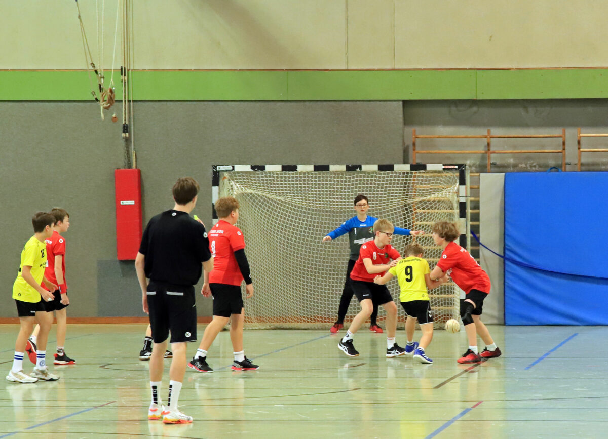 Auch heute sah es am Anfang wieder nach einem schweren Spiel aus. Die Gäste gingen nach 1 Minute mit einem Tor in Führung. Beide Mannschaften agierten nervös. Kennzeichen dafür waren die vielen Ballverluste. Der Ausgleichtreffer durch uns fiel dann erst 2 Minuten später. Auch die nächsten Minuten waren durch beidseitige Ballverluste gekennzeichnet. Die Gäste waren da jedoch auf der glücklicheren Seite und führten nach 9 Minuten mit 2 Toren (1:3). Die Unterensinger Auszeit brachte für die Gäste nicht den gewünschten Erfolg. Im weiteren Verlauf kamen wir heran und glichen in der 12’ten Minute zum 4:4 aus um dann weiter nachzusetzen und bis zur 15 Minute selbst mit 3 Toren in Führung zu liegen. (7:4). Das Spiel schwappte nun hin und her. Bis zur Halbzeit konnten wir unseren Vorsprung aber behalten. Mit 10:8 ging man in die Pause. Nach Wiederanpfiff konnte wir mit einem kleinen Zwischenspurt schon mal klar machen wer hier heute als Sieger vom Platz gehen wird. Innerhalb von 4 Minuten bauten wir den Vorsprung auf 6 Tore aus (14:8). Unsere Jungs ließen dann jedoch in der Konzentration etwas nach. Es häuften sich ungenaue Abspiele, Fangfehler auch ging man in der Abwehr nicht mehr so richtig zur Sache. Das eröffnete den Unterensingern einige Torchancen, die jedoch unser Torwart vielfach verhinderte. Bei Abpfiff lagen wir dann 6 Tore vorn und konnten den 19:13 Heimsieg mit einem Tänzchen feiern. Am Heimsieg beteiligt waren: Toma, Anton, Theodor, Arne, Felix, Julian K, Fabian, Tom, Jonah, Mirzanyar, Emil, Max, Lukas, Michael.