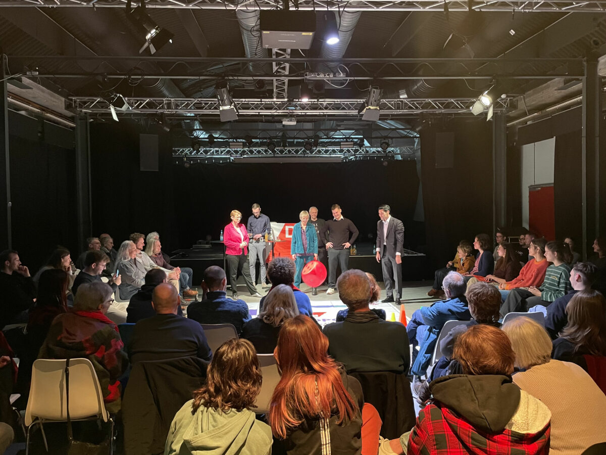 Die Kandidierenden waren keine Redner hinter Tischen, sondern lebende Spielfiguren. Mit Würfeln ging es über ein Feld voller Fragen und Herausforderungen. 4.000 Euro gab es nicht, wenn man über „Los“ kam, aber „direkt ins Gefängnis“ konnte es durchaus heißen. Auf spielerische Weise präsentierten die Politikerinnen und Politiker ihre Positionen zu zentralen Themen und stellten sich den Fragen aus dem Publikum. Genau dieser direkte Austausch machte den Abend so wertvoll: komplexe Inhalte wurden verständlich, politische Beteiligung fühlbar, besonders für jüngere Wählerinnen und Wähler.