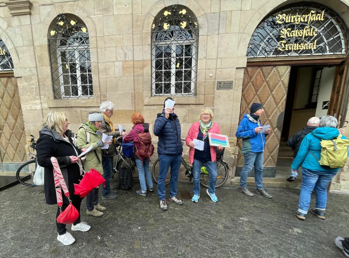 Über diese Aktion wurden der Oberbürgermeister sowie der Kulturbürgermeister informiert. Verteilt haben wir die Sammlung in Briefform auch an alle Gemeinderät:innen. Als bisher einzige Fraktion hat uns daraufhin die SPD eingeladen. Den Gemeinderät:innen Ulrike Gräter, Christa Müller und Nikolas Fink haben wir die Aktion erklärt und über unsere vielfältige parteiunabhängige Arbeit berichtet. Es war ein sehr wertschätzender und guter Austausch.