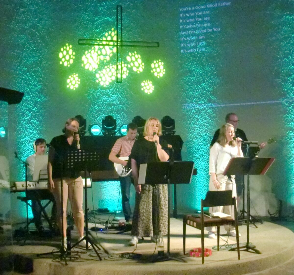Gemeinsames Singen – Live Band – Gott loben – leckere Snacks – gelebte Gemeinschaft.